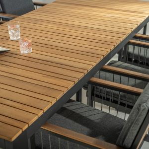 Tikovina i metal idealni su materijali za vrtni namještaj zbog svoje otpornosti na vremenske uvjete i štetnike, dugog vijeka trajanja i minimalnog održavanja. Tikovina je prirodno otporna na štetnike i ima sposobnost razvijanja atraktivne patine tijekom vremena, dok metalni namještaj poput aluminija i nehrđajućeg čelika pruža iznimnu čvrstoću, stabilnost i jednostavan je za održavanje. Oba materijala kombiniraju funkcionalnost i estetiku, osiguravajući da će vaš vrtni namještaj trajati godinama i ostati vizualno privlačan.