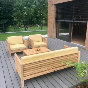 • Lounge garniture: Lounge garniture od drva donose prirodnu toplinu i često se kombiniraju s tapeciranim jastucima za dodatnu udobnost. Ovi setovi dizajnirani su za opuštanje i stvaranje ugodnog kutka na otvorenom, gdje se možete udobno opustiti ili družiti s prijateljima i obitelji.