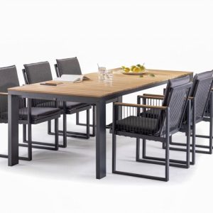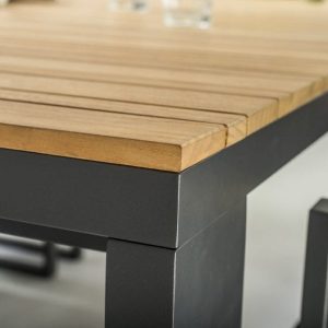 Stol Marra 180 kombinira suvremenu aluminijsku konstrukciju s profinjenom pločom stola od umjetnog kamena, što osigurava vrhunsku izdržljivost i otpornost na vremenske uvjete. Stabilan i snažan dizajn omogućuje dugotrajnu uporabu, bez obzira koristite li ga u privatnim ili javnim prostorima.