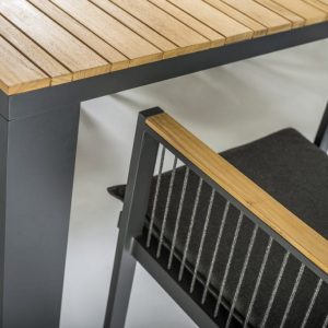 Vrtni stol Marra 180 estetski je oblikovan i odlikuje ga snažno postolje. Aluminijski okvir je u antracit boji. Ploča stola izrađena je od umjetnog kamena, koji je otporan na vremenske uvjete i ne zahtijeva posebno održavanje.